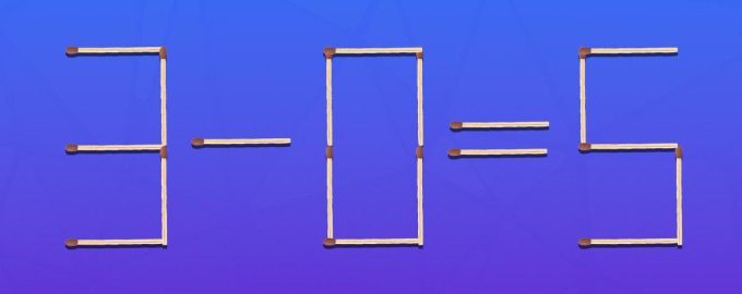 Man könnte also je ein Streichholz an 3 und 5 anhängen, so dass sie die Zahl 9 bilden würden. Dann würde man die Gleichheit 9+0=9 erhalten, was mathematisch korrekt ist.
