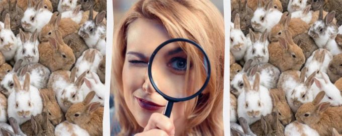 Wir haben also eine Collage erstellt, die Dutzende von Kaninchen zeigt. Irgendwo unter ihnen sind drei Kätzchen versteckt.