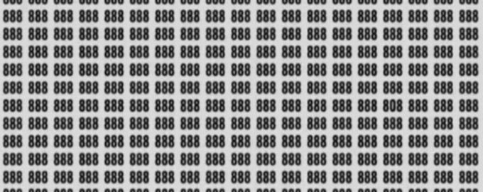 Rätsel und optische Täuschungen dienen nicht nur dem Spaß, sondern sind auch eine gute Möglichkeit, Ihren IQ und Ihre Beobachtungsgabe zu testen. Sie verfügen über ein hohes Maß an Intelligenz, wenn Sie diese knifflige optische Täuschung in nur drei Sekunden lösen können. Deine Aufgabe ist es, die Zahl 808 zu finden, die in der Folge 888 versteckt ist.