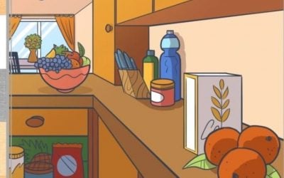 Du kannst die Ananas nicht finden? Hier ist ein Tipp: Schau nach links – die Ananas ist unten im Schrank versteckt. Die richtige Antwort ist gelb eingekreist.
