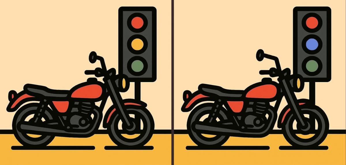 Sind Sie also bereit für die nächste Herausforderung? Schauen Sie sich zwei Bilder eines Motorrads in der Nähe einer Ampel genau an. Auf den ersten Blick mögen sie gleich aussehen, aber es gibt 3 kleine Unterschiede. Glaubst du, dass du sie alle in 19 Sekunden finden kannst? Probieren Sie es aus und testen Sie Ihre Sehschärfe!