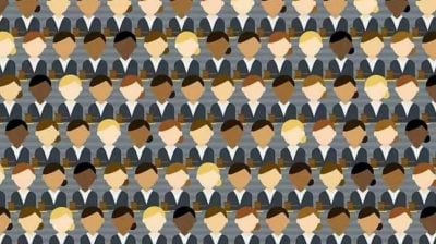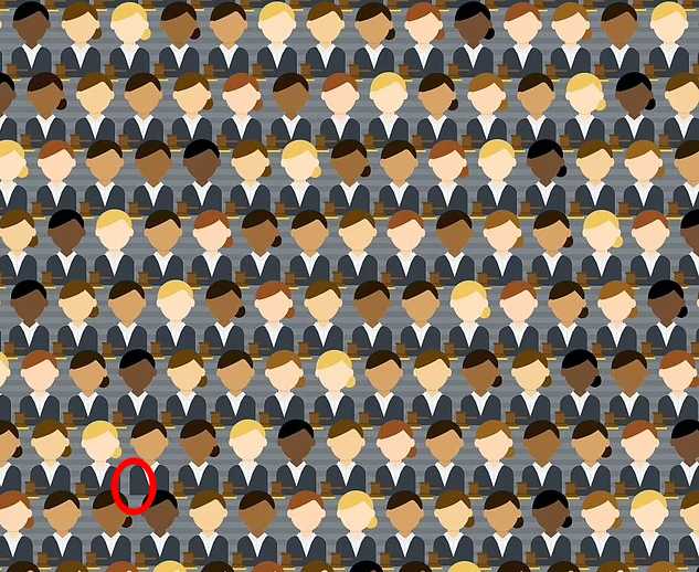 Auf dem Bild sind viele Richter zu sehen. Alle von ihnen haben einen Richterhammer. Unsere Aufgabe ist es, einen Richter zu finden, der keinen Hammer hat.