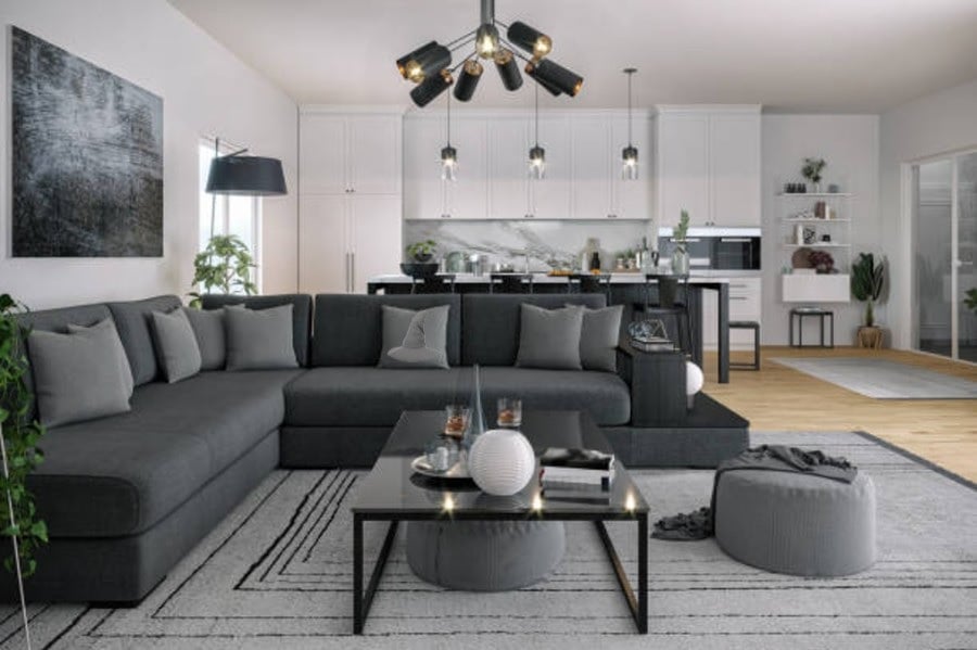 Auf dem Bild sehen wir einen großen, gut eingerichteten Raum, dessen Einrichtung in grauen und weißen Farben gehalten ist. Viele der Gegenstände, die wir auf dem Bild sehen, werden die Suche nach dem verlorenen Hut behindern, also müssen Sie sich so gut wie möglich auf die Aufgabe konzentrieren und dürfen sich von nichts anderem ablenken lassen.