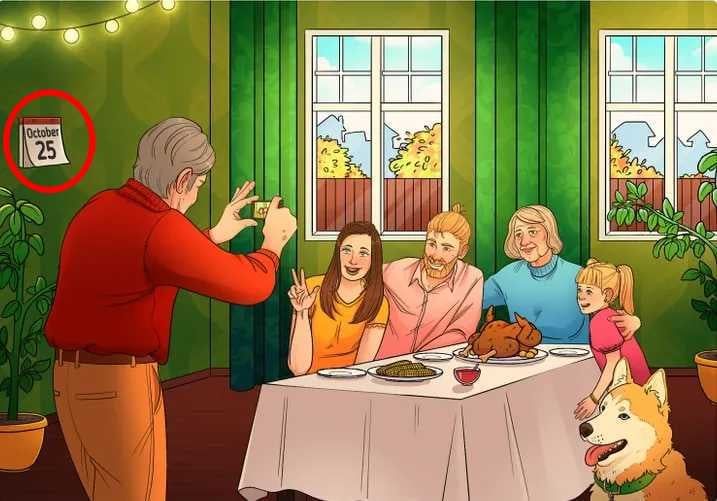 Der Fehler besteht darin, dass das Datum auf dem Kalender der 25. Oktober ist und Thanksgiving im November stattfindet.