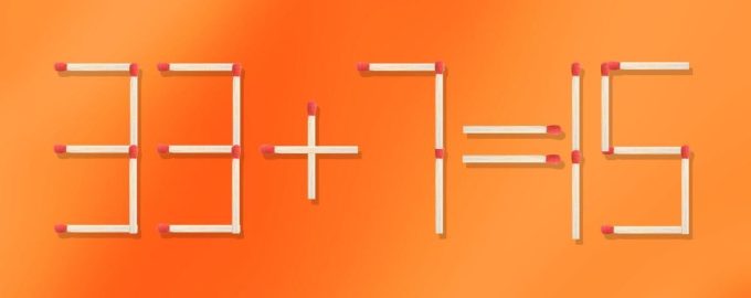Lassen Sie uns das Bild gemeinsam analysieren. Wir können das „+“-Zeichen durch ein „-„-Zeichen ersetzen, aber 33-7 ist nicht gleich 15. Wir verschieben also ein Streichholz vom „+“-Zeichen zur Zahl 15.