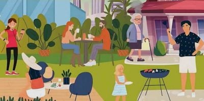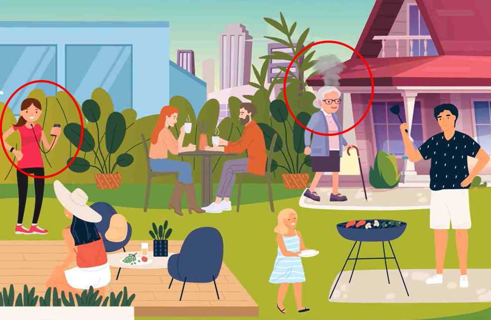 Schauen Sie sich das Bild unten an. Es zeigt eine Partyszene im Freien. Die Menschen auf dem Bild verbringen ihre Zeit damit, sich zu entspannen, sich zu unterhalten und zu grillen.