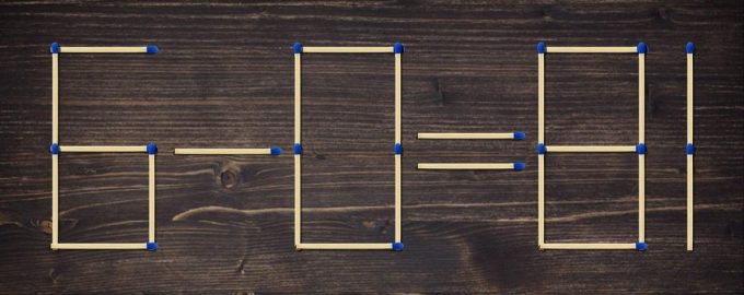 Das Bild zeigt ein arithmetisches Beispiel 6-0=81, das offensichtlich falsch ist. Man kann nur 2 Streichhölzer so anordnen, dass die Aufgabe richtig aussieht. Dazu muss man über den Tellerrand schauen und ein gutes mathematisches Gespür haben.