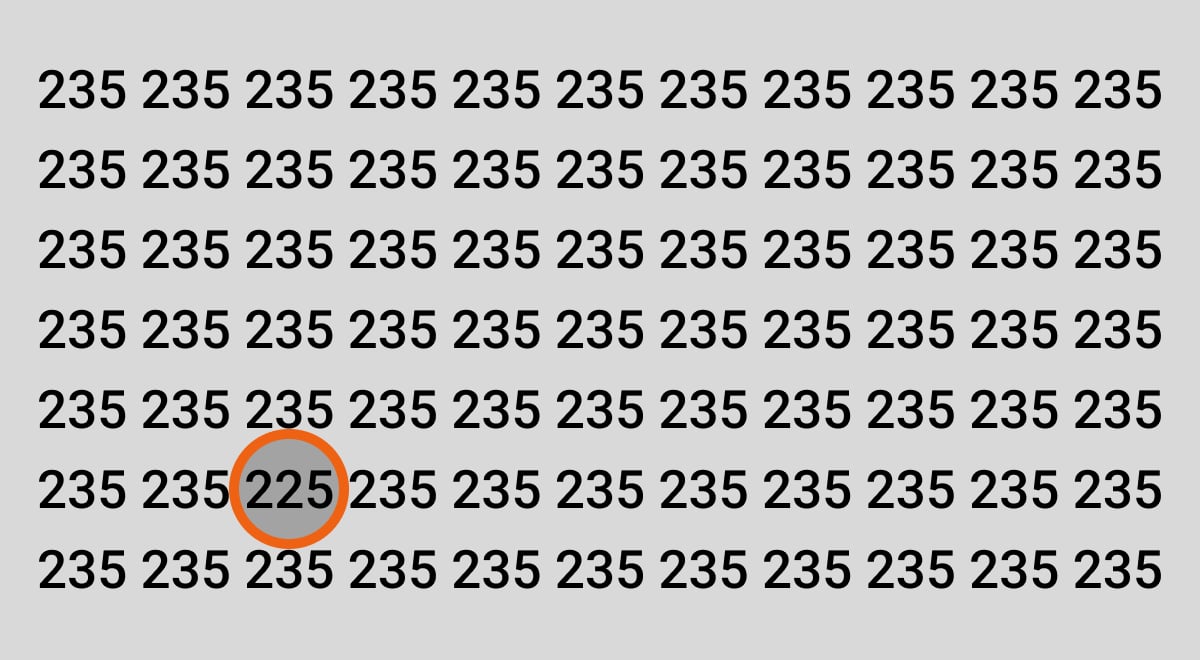 Kannst du die Zahl 225 finden und das sehr schnell – in nur 8 Sekunden. Nur sehr aufmerksame Menschen werden es in einer so kurzen Zeit schaffen.