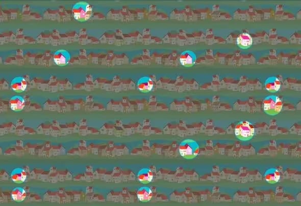 Ihre Aufgabe ist es, alle 16 rosa Häuser in weniger als 15 Sekunden zu finden.