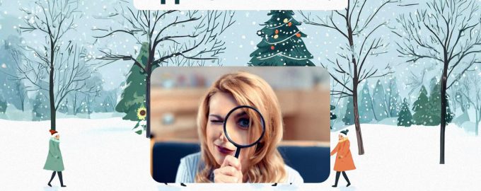 Unten sehen Sie ein Bild von einem Wintertag, Menschen und Weihnachtsbäumen. Aber irgendetwas stimmt nicht, und Ihre Aufgabe ist es, herauszufinden, was es ist.