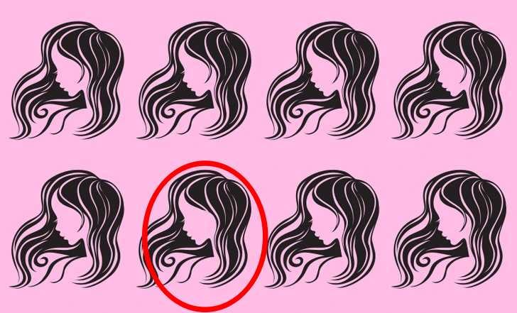 Von den acht Gesichtern unterscheidet sich nur ein einziges von allen anderen. Es wird nicht einfach sein, genau zu erkennen, welches kleine Detail dieses Mädchen unverwechselbar macht.