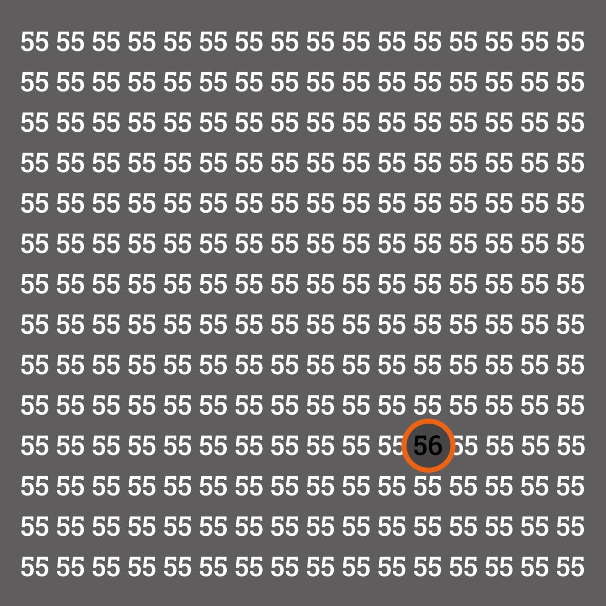 Eine so große Anzahl von Zahlen 55 lenkt auf jeden Fall davon ab, die eine markante Zahl zu finden. Man muss sich also sehr stark konzentrieren und darf sich nicht von den anderen Elementen ablenken lassen, um die richtige Antwort zu finden.