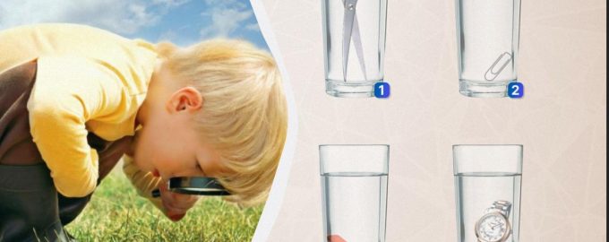 Moje bietet Ihnen heute ein Rätsel, das nur von sehr aufmerksamen Menschen gelöst werden kann. Vor Ihnen stehen vier Gläser mit Wasser, in die Sie jeweils verschiedene Gegenstände legen: eine Schere, eine Büroklammer, ein Gummiband und eine Armbanduhr. Sie müssen in weniger als 8 Sekunden feststellen, in welchem Glas sich mehr Wasser befindet.