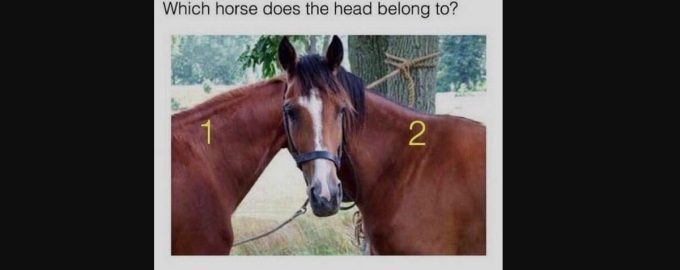 Auf der optischen Täuschung sind zwei Pferde zu sehen, von denen sich eines umgedreht hat, um in die Kamera zu schauen. Die Herausforderung besteht darin, herauszufinden, welches Pferd einen anschaut.