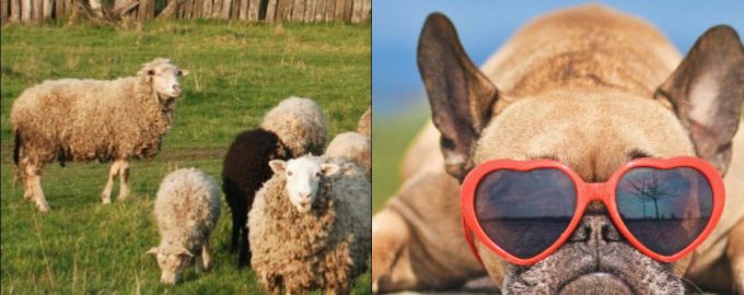 Versuchen Sie, in 8 Sekunden einen versteckten Hund unter Schafen verschiedener Farben – weiß und schwarz – zu finden, die sich auf einer Weide befinden. Eine Person mit einem grandiosen IQ sollte in der Lage sein, diese Aufgabe in 8 Sekunden zu lösen.