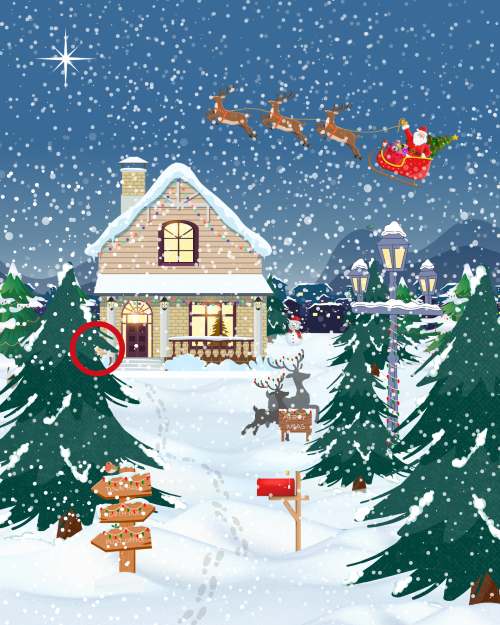 Wenn du Probleme hast, die versteckte Elfe zu finden, mach dir keine Sorgen. Sie sind nicht allein. Viele Leute finden dieses Rätsel sehr schwierig. Ein Tipp: Schauen Sie sich den Teil des Bildes an, der sich zwischen dem Weihnachtsbaum auf der linken Seite und der Eingangstür des Wohnhauses befindet. Die richtige Antwort ist rot eingekreist.