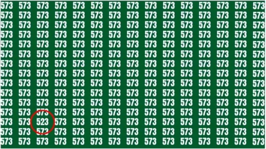 Das Rätsel fordert Sie auf, die versteckte Zahl 523 zu finden, die im Meer von 573 versteckt ist.