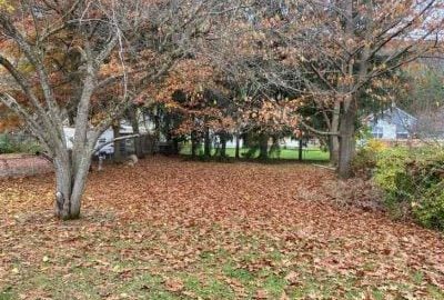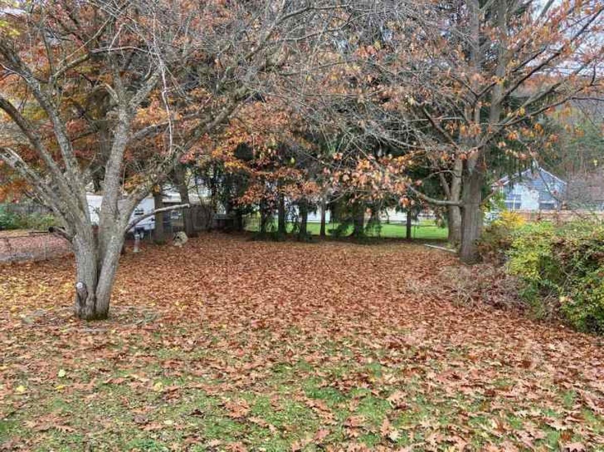 Das Bild zeigt einen Park, Spätherbst. Irgendwo im Park versteckt sich ein Hund.