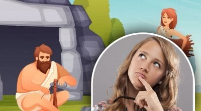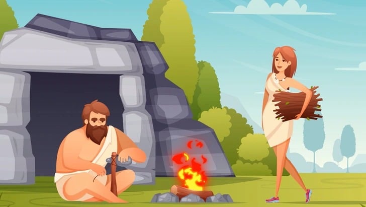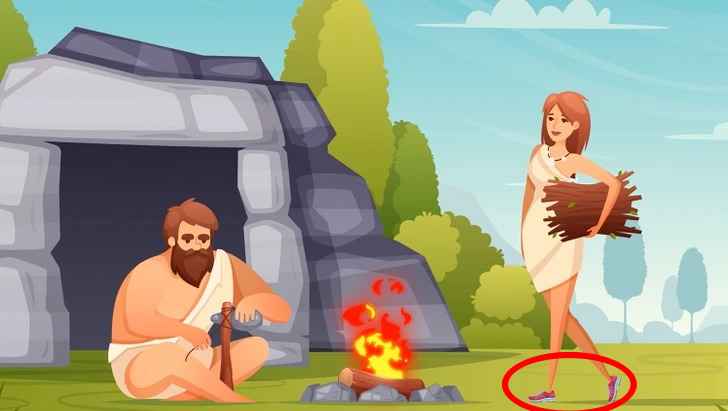 Im nächsten Rätsel musst du den Fehler im Bild finden, schreibt jagranjosh. Auf dem Bild sehen wir primitive Menschen – einen Mann und eine Frau – die in der Nähe der Höhle, in der sie leben, ein Feuer zum Kochen gemacht haben.