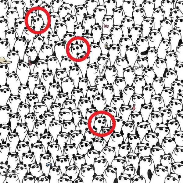 Wenn du ein wenig Ablenkung brauchst, kannst du optische Täuschungen lösen. Mit Rätseln kann man mit Freunden und Familie Spaß haben. Dieses Mal müssen wir drei Pandas finden, die keine Sonnenbrille tragen.