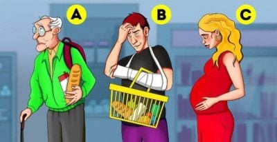 Stellen Sie sich vor: Sie befinden sich in einem Lebensmittelladen, in dem drei Personen des Diebstahls verdächtigt werden – ein Rentner, ein Mann mit einem gebrochenen Arm und eine schwangere Frau. Das sind die Personen, die wir gerade auf dem Bild sehen.