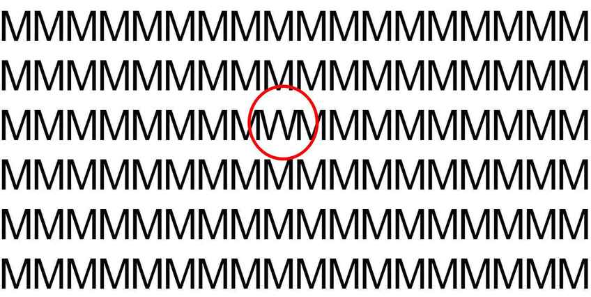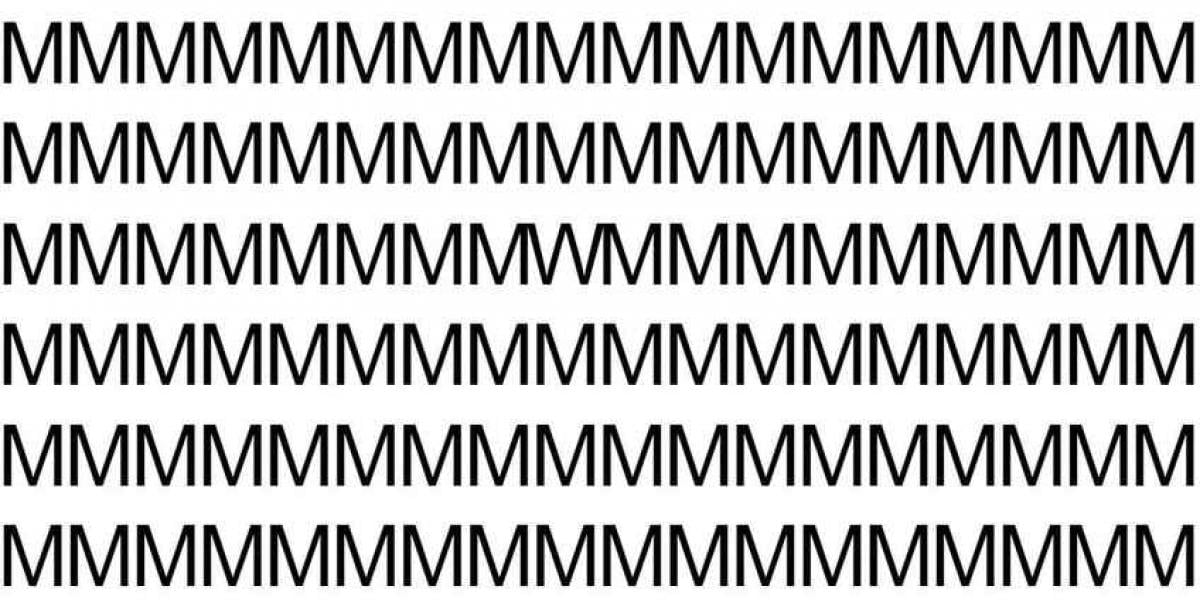 Lösen Sie eine faszinierende optische Täuschung – unter den Buchstaben M, von denen es viele auf dem Bild gibt, müssen Sie schnell das W finden, das Sie nicht sehen können.