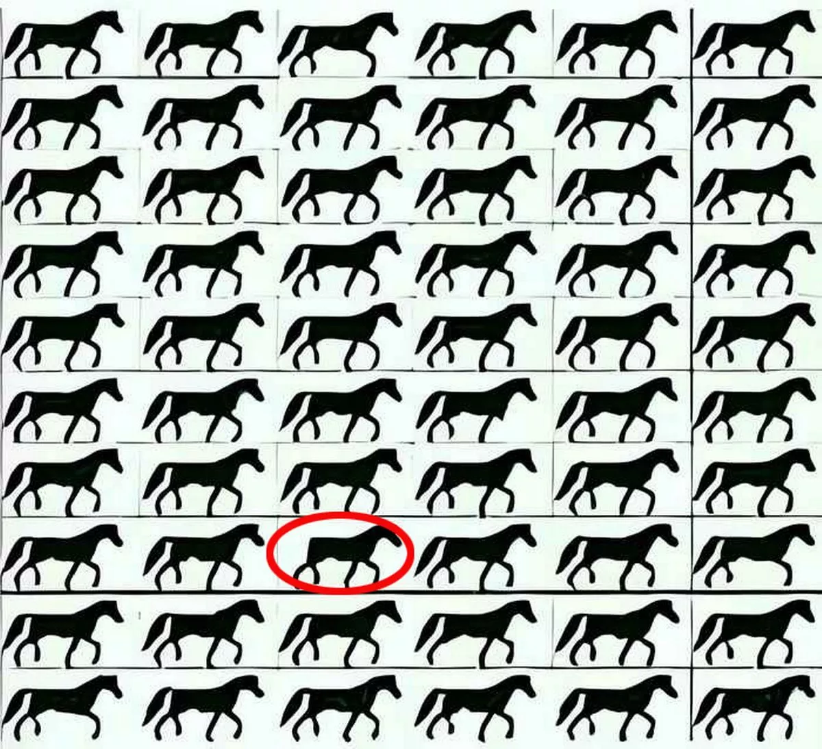 Du musst ein Pferd ohne Schwanz finden. Auf den ersten Blick mag das Bild schwer zu lösen sein. Es gibt so viele Pferde auf dem Bild, dass Ihre Augen zerstreut sein werden.
