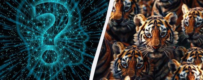 Es gibt ein ganz neues Rätsel, bei dem man innerhalb von 8 Sekunden ein einziges Löwenjunges unter einer großen Anzahl von stolzen Tigern finden muss.
