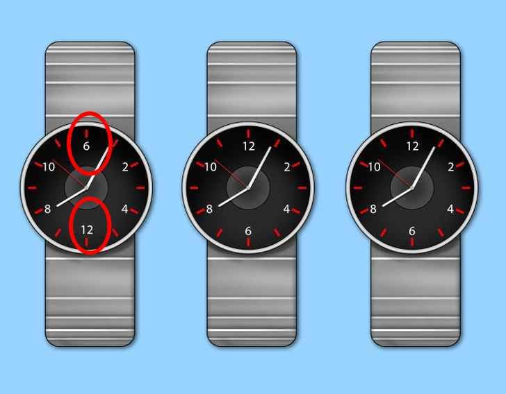 Sie konnten die richtige Antwort nicht finden? Hier ist ein Hinweis: Das Zifferblatt der ersten Uhr unterscheidet sich von den beiden anderen. Bei der ersten Uhr sind die Zahlen 6 und 12 vertauscht. Bei den anderen ist alles normal: Die 12 steht oben und die 6 unten.