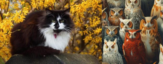 Sie können versuchen, diese Aufgabe zu bewältigen – in 6 Sekunden müssen Sie unter fantastischen Eulen eine Katze finden, die als tückisch bezeichnet werden kann. Wenn du sehr aufmerksam bist, kannst du die versteckte Schwanzkatze vielleicht sogar noch schneller finden.