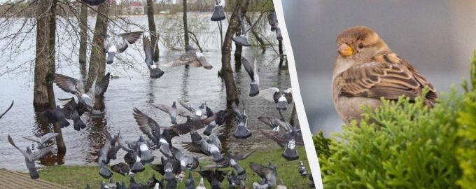 Heute haben wir für Sie ein Bild vorbereitet, auf dem sich ein kleiner Spatz versteckt. Sie sehen das Ufer, an dem sich eine große Anzahl von Tauben versammelt hat, ein Gewässer und Bäume. Der Spatz ist gut versteckt, aber echte Kenner werden ihn schnell finden können.