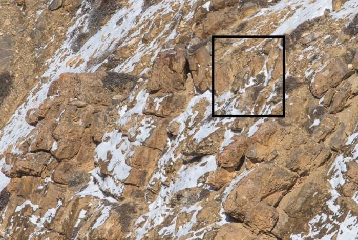 Er postete ein Foto von einem Schneeleoparden, der zwischen den Felsen herumschleicht, aber es ist extrem schwierig, das Tier auf dem Bild zu erkennen, schreibt Glavred.