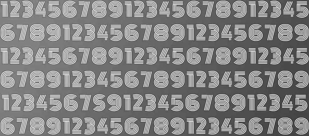 Auf dem Bild sehen wir viele verschiedene Zahlen, die in einer interessanten Schriftart dargestellt sind. Die Zahlen sind in Reihen angeordnet. Aber irgendwo dazwischen ist der Buchstabe S versteckt, und er ist so geschickt und erfolgreich verkleidet, dass es eine Aufgabe ist, ihn zu entdecken.