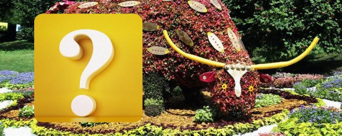 Auf dem Foto unten sehen Sie ein farbenfrohes Blumenbeet, das mit einer riesigen Stierstatue geschmückt ist. Zwischen all diesen bunten Farben versteckt sich eine weiße Katze. Sie sollten versuchen, sie in nur 6 Sekunden zu finden.