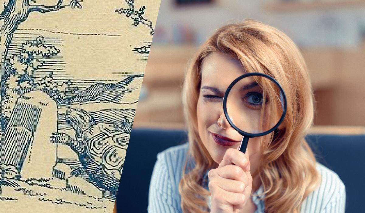 Das alte Bild zeigt eine Schildkröte, die auf einer Lichtung nach einem Hasen Ausschau hält. Es wird angenommen, dass aufmerksame Menschen den Hasen auf dem Bild sehr schnell finden können, während Menschen mit scharfer Sehkraft nur sechs Sekunden brauchen, um ihn zu finden.