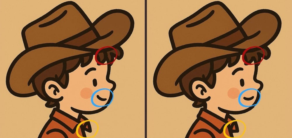 Sind Sie also bereit für die nächste Herausforderung? Schauen Sie sich zwei Bilder eines Jungen mit Cowboyhut genau an. Auf den ersten Blick mögen sie gleich aussehen, aber es gibt 3 kleine Unterschiede. Glaubst du, dass du sie alle in 51 Sekunden finden kannst? Probiere es aus und teste deine Sehschärfe!