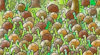 Die heutige Aufgabe ist spannend: Finden Sie die versteckte Schlange unter den vielen Schildkröten. Sie haben nur 5 Sekunden Zeit, um sie zu finden, schreibt Jagranjosh.