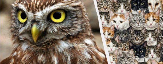 Finde drei Eulen unter Katzen / Collage Moje