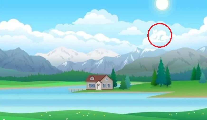 Es wird schwierig sein, das Kaninchen auf dem Bild mit den Bergen und dem Haus zu finden, denn nicht alles ist so offensichtlich, wie es scheinen mag.