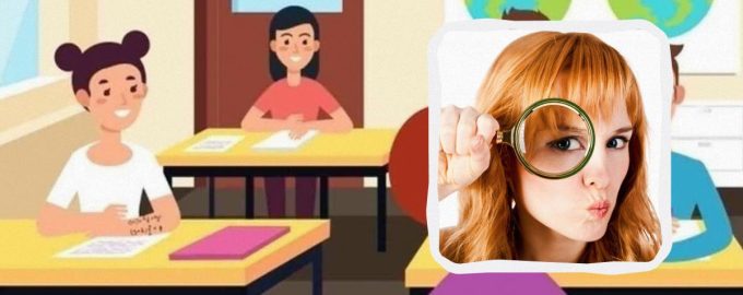 In letzter Zeit sind Puzzles und verschiedene optische Täuschungen im Internet sehr beliebt. Und hier ist eine von ihnen. Vor Ihnen ist eine Szene in einem Prüfungssaal zu sehen. Unter den Schülern gibt es einen, der bei der Prüfung schummelt.