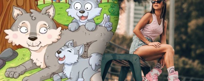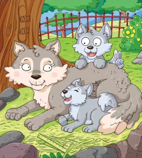 Auf dem Bild sehen wir eine Wolfsmutter mit zwei Wolfsjungen. Auf den ersten Blick sieht es so aus, als gäbe es keine Rollschuhe auf dem Bild, aber traue deinem ersten Eindruck nicht.