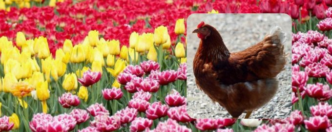Das Huhn stand die ganze Zeit über direkt vor Ihnen – zwischen den rosa Tulpen. Wir haben es in Weiß eingekreist.