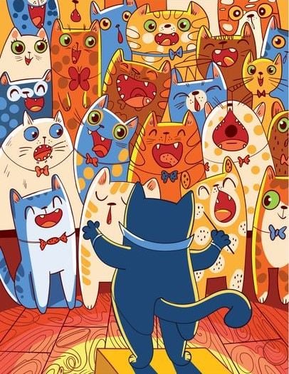 Auf dem Rätselbild siehst du eine Gruppe von Katzen, die im Chor singen. Die graue Katze im Vordergrund ist der Anführer des Chors und die anderen Katzen folgen ihm. Die Katzen bereiten sich auf einen Chorwettbewerb vor, und sie brauchen alle Energie, die sie bekommen können. Die Katze, die den Chor leitet, hat Fische für ihre Gruppe gekauft. Leider hat eine der gierigen Katzen alle Fische aufgefressen und es ist nur noch ein Fisch übrig. Kannst du den versteckten Fisch im Chor in 12 Sekunden finden?