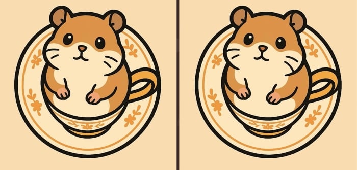 Sind Sie also bereit für die nächste Herausforderung? Schauen Sie sich die beiden Bilder eines Hamsters, der in einer Tasse sitzt, genau an. Sie mögen auf den ersten Blick identisch aussehen, aber es gibt 3 kleine Unterschiede. Glaubst du, dass du sie alle in 51 Sekunden finden kannst? Probiere es aus und teste deine Sehschärfe!