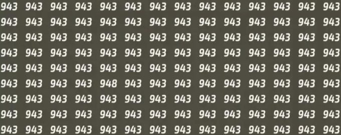 Aber Sie haben nur 10 Sekunden Zeit, um dieses Rätsel zu lösen. Nur wer scharfe Augen hat, kann die versteckte Zahl 948 in der Zahlenreihe 943 erkennen.
