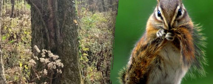 Auf dem Bild sehen wir einen Baum, der mitten im Wald wächst. Auf den ersten Blick scheint es, als ob wir nichts anderes als das Bild dieser Waldidylle sehen würden. Aber das ist es nicht. Irgendwo auf dem Bild versteckt sich ein gerissenes Streifenhörnchen, das nur sehr schwer zu entdecken ist.