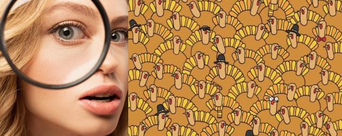 Das farbenfrohe Bild lädt Sie ein, einen Kürbis zu finden, der zwischen den Truthähnen versteckt ist. Schauen Sie sich das Bild genau an und schätzen Sie ein, wie schnell Sie den Kürbis auf diesem Bild erkennen können. Die Aufgabe wird noch interessanter, wenn Sie sich nur 7 Sekunden Zeit nehmen, um das versteckte Element zu finden.