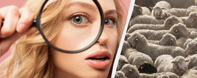 Unten sehen Sie eine Collage von Schafen. Irgendwo da drin haben wir drei Hunde versteckt. Kannst du sie in nur 12 Sekunden finden?