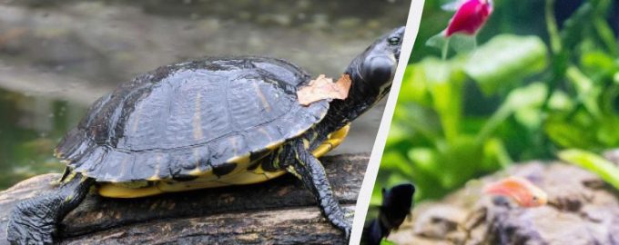 Unter der Vielzahl von Fischen solltest du so schnell wie möglich eine Schildkröte sehen. Dieses Tier kann mit etwas in der Nähe verschmelzen. Außerdem können andere Objekte im Bild Ihre Aufmerksamkeit stark von ihr ablenken.