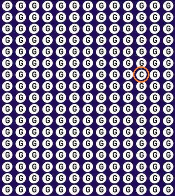 Finde den Buchstaben C unter den G’s in 5 Sekunden / selfiequiz.com